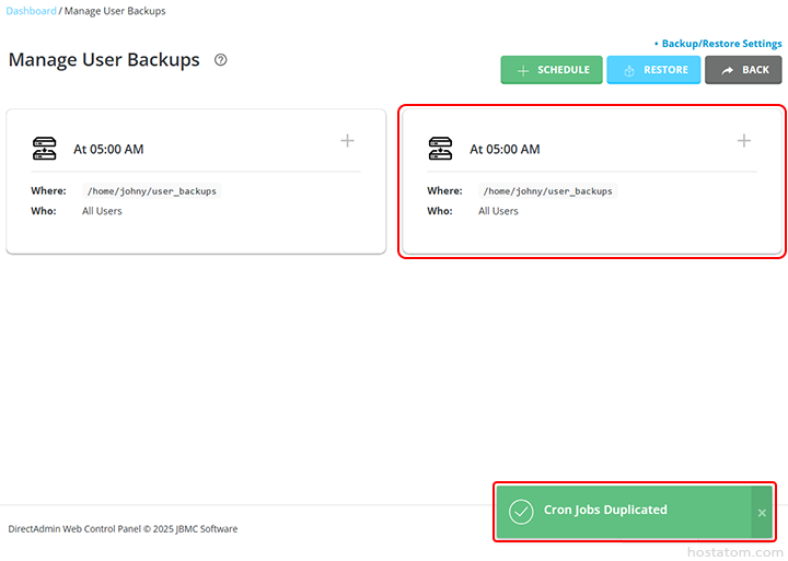 วิธีคัดลอกกำหนดการ backup ข้อมูลสำหรับ reseller ใน DirectAdmin
