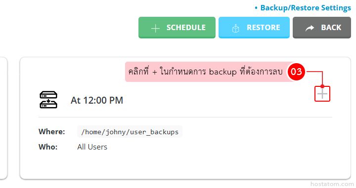 คลิกที่ + ในกำหนดการ backup ที่ต้องการลบ