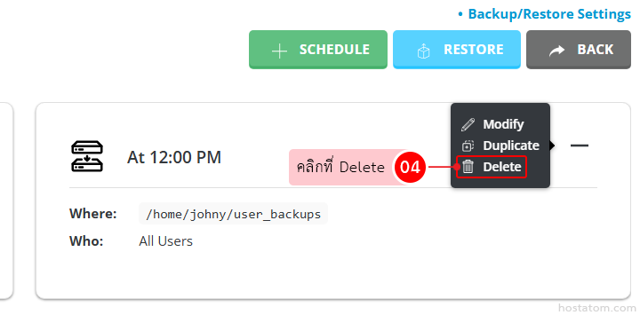 ระบบจะแจ้งว่าได้ลบกำหนดการ backup ข้อมูลดังกล่าวแล้ว