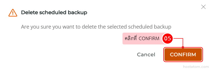 ระบบจะแสดงหน้าต่างยืนยันการลบกำหนดการ backup ข้อมูลที่เลือกขึ้นมา ให้คลิกที่ CONFIRM