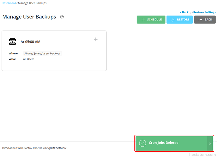 วิธีลบกำหนดการ backup ข้อมูลสำหรับ reseller ใน DirectAdmin