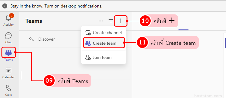 จากนั้นคลิกที่เครื่องหมาย + เลือก Create Teams