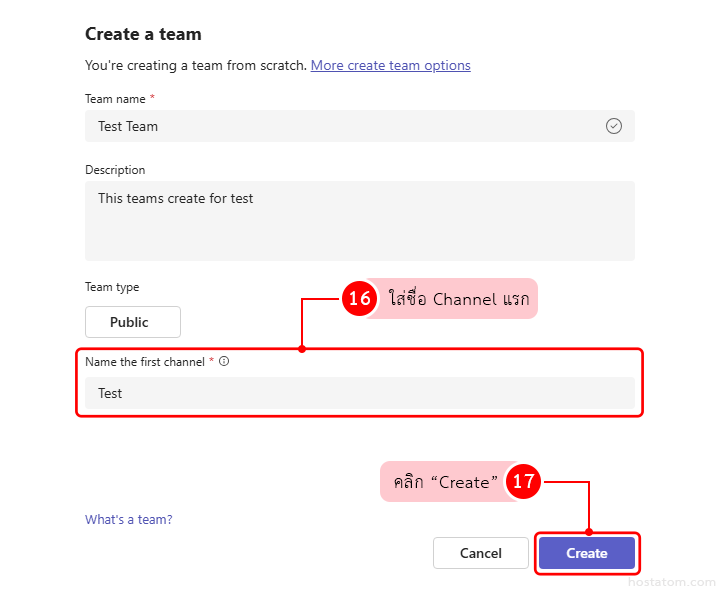 - Description: ใส่คำอธิบายชื่อ Team ที่ต้องการ
