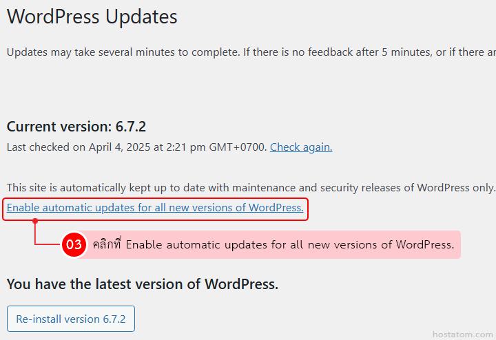 คลิกที่ Enable automatic updates for all new versions of WordPress.