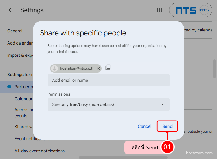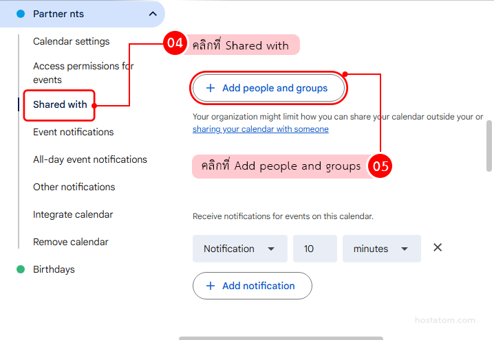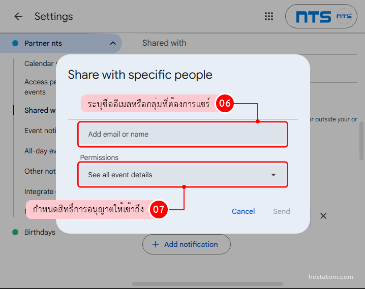 ระบุชื่ออีเมลของบุคลลที่เราต้องการแชร์ปฏิทิน หรือกลุ่มที่เราต้องการแชร์ปฏิทินด้วย