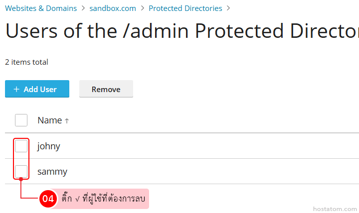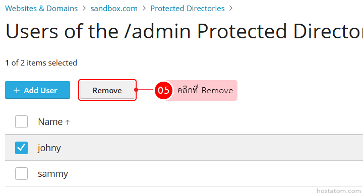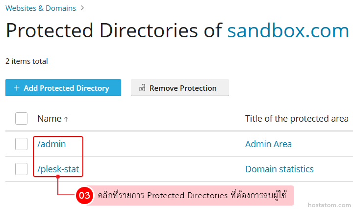 วิธีลบผู้ใช้ออกจาก Protected Directories ใน Plesk