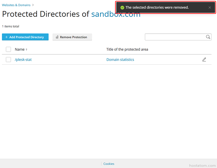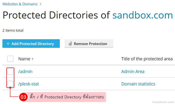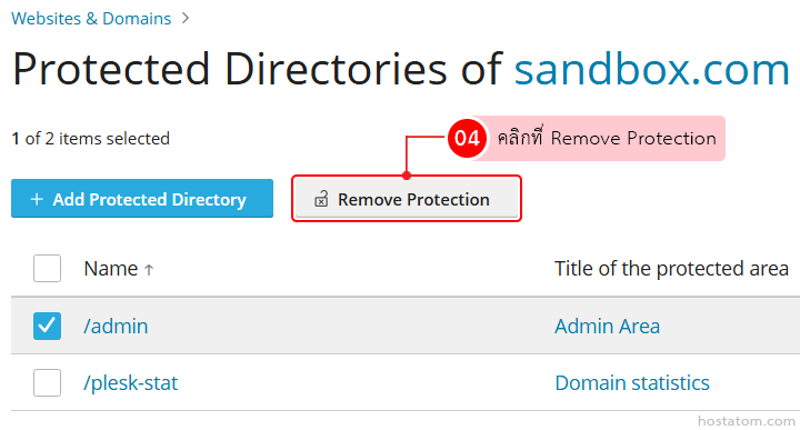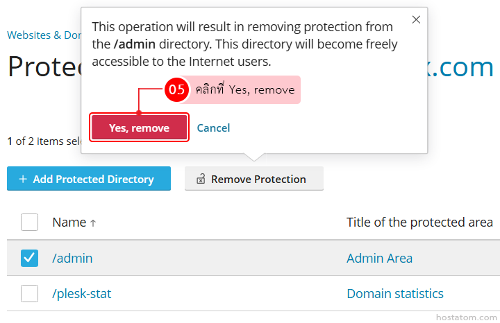 วิธีลบ Protected Directories ใน Plesk