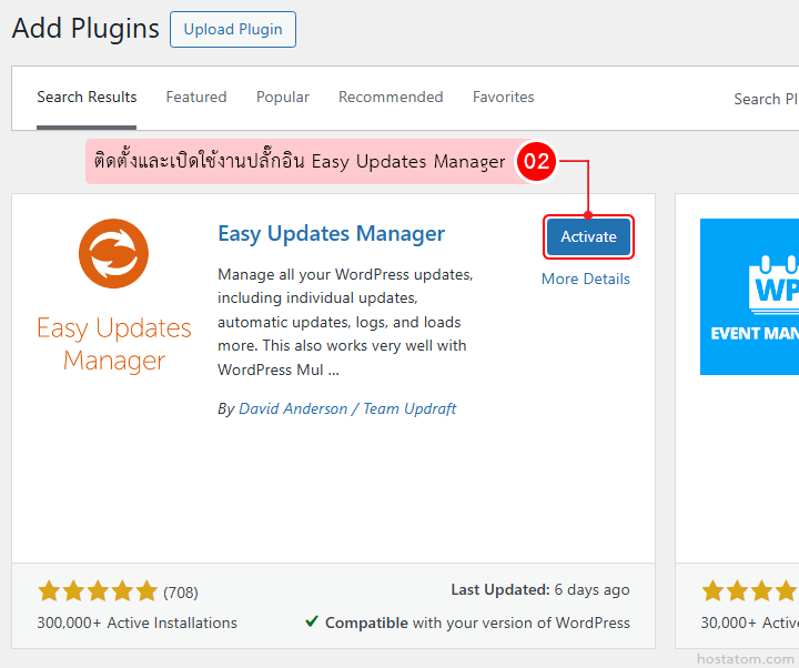ติดตั้งและเปิดใช้งานปลั๊กอิน Easy Updates Manager