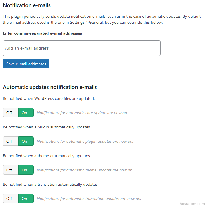 คุณสามารถตั้งค่าให้ส่งการแจ้งเตือนทางอีเมลเวลามีอัปเดตใหม่ หรือเวลามีการอัปเดตอัตโนมัติ (เหมาะกับคนที่อยากรู้ทุกความเคลื่อนไหวของเว็บตัวเอง)
