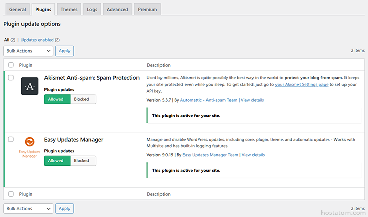 - Manually update – อัปเดตปลั๊กอินด้วยตัวเอง (อัปเดตบางอย่างอาจยังเกิดขึ้นอัตโนมัติ เช่น แพตช์ความปลอดภัย)