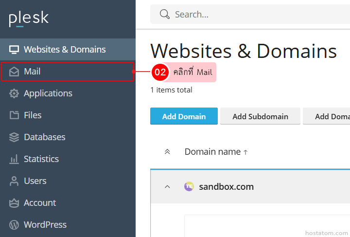 สำหรับผู้ที่ใช้งาน control panel ของ Plesk สามารถตรวจสอบพื้นที่ mailbox ของบัญชีอีเมลที่มีอยู่ในระบบได้ตามขั้นตอนต่อไปนี้