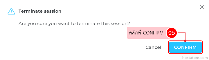 ระบบจะแสดงหน้าต่างยืนยันการตัดการเชื่อมต่อของ session ที่เลือกขึ้นมา ให้คลิกที่ COMFIRM