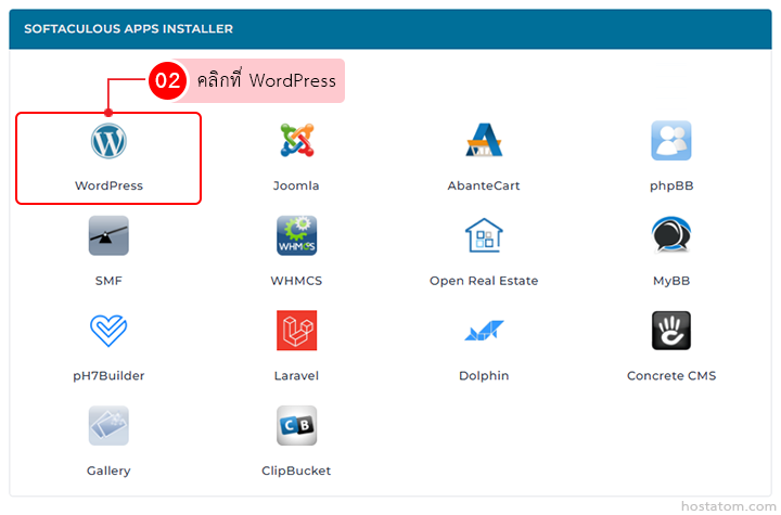 คลิกที่ WordPress ในหมวด SOFTACULOUS APPS INSTALLER