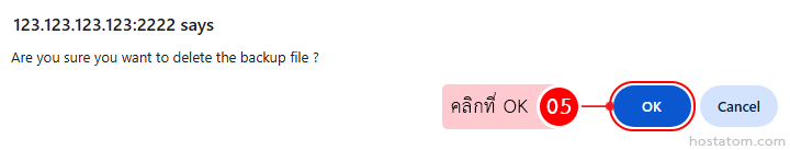 ระบบจะแสดงหน้าต่างยืนยันการลบไฟล์ backup ขึ้นมา ให้คลิกที่ OK