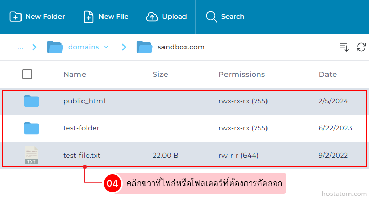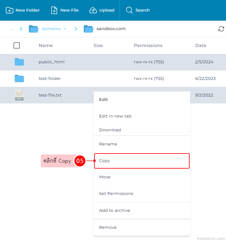 คลิกขวาที่ไฟล์หรือโฟลเดอร์ที่ต้องการคัดลอก