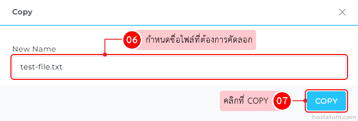 กำหนดชื่อไฟล์ที่ต้องการคัดลอกในหัวข้อ New Name คลิกที่ COPY