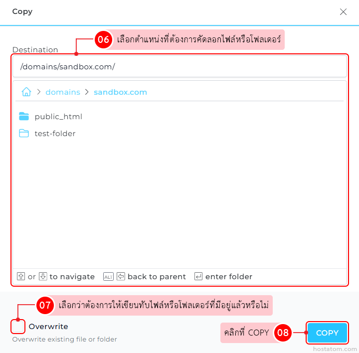 - Overwrite – เลือกว่าต้องการให้เขียนทับไฟล์หรือโฟลเดอร์ที่มีอยูแล้วหรือไม่