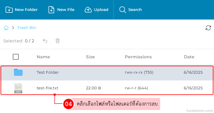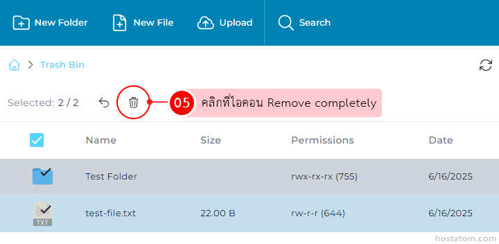 สำหรับผู้ที่ใช้ control panel ของ DirectAdmin สามารถลบไฟล์หรือโฟลเดอร์ที่ถูกลบมายัง Trash Bin ออกไปอย่างถาวรผ่าน File Manager ได้ตามขั้นตอนต่อไปนี้