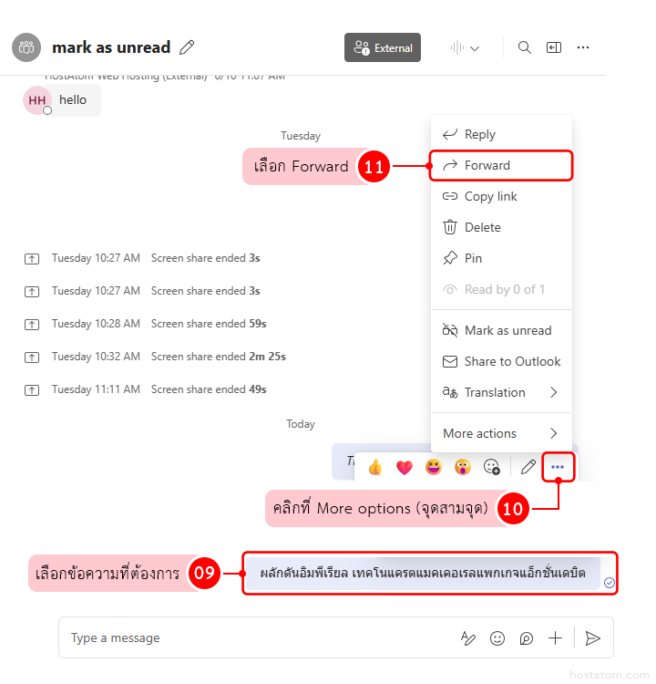 วิธี Forward ข้อความในแชทหรือช่อง (Channel)