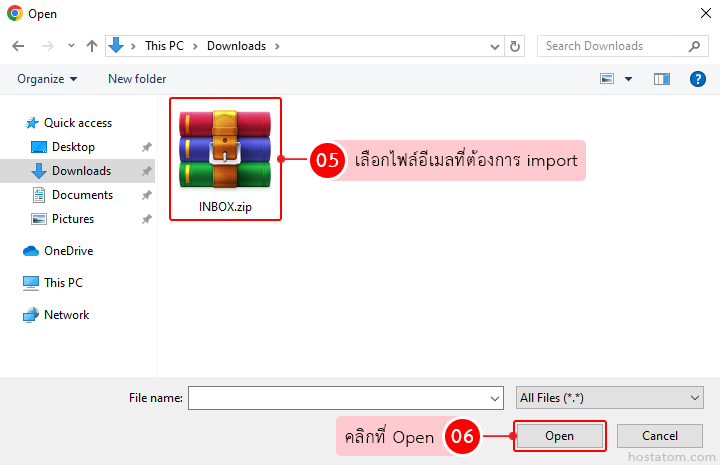 เลือกไฟล์อีเมลที่ต้องการ import จากนั้นคลิกที่ Open