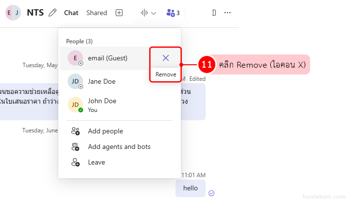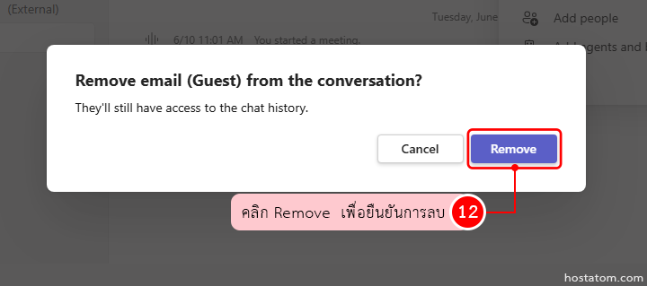 คลิกปุ่ม Remove เพื่อยืนยันการลบผู้ใช้ออกจากแชท