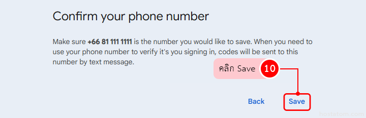 ระบบจะเด้งหน้าต่างขึ้นมาให้ยืนยันว่าเบอร์โทรที่ใส่นั้นถูกต้องใช่ไหม ถ้าถูกต้องแล้ว ให้คลิก Save