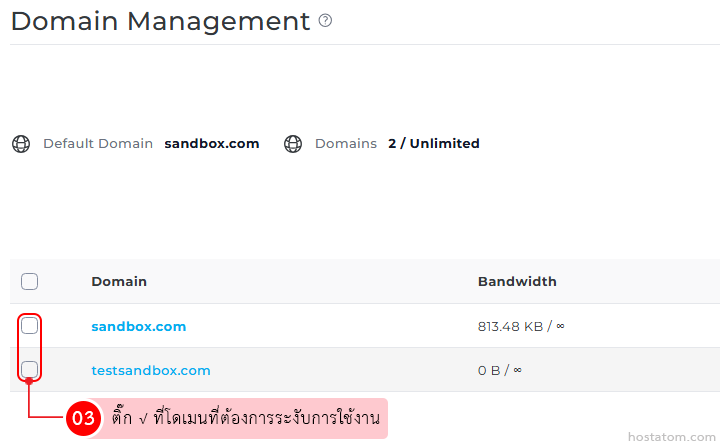 ติ๊ก √ ที่โดเมนที่ต้องการระงับการใช้งาน