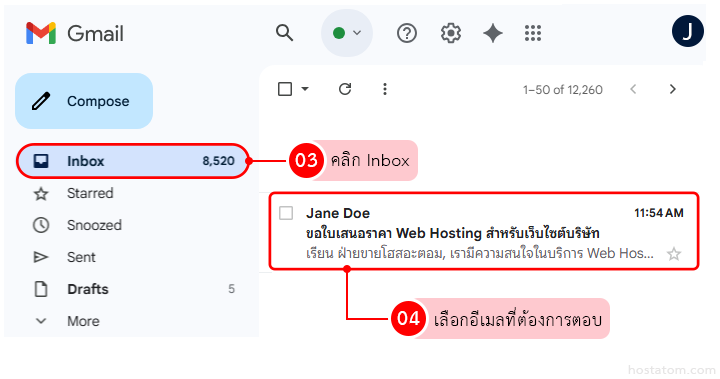 ที่ Inbox เปิดอีเมลฉบับที่คุณต้องการตอบกลับ
