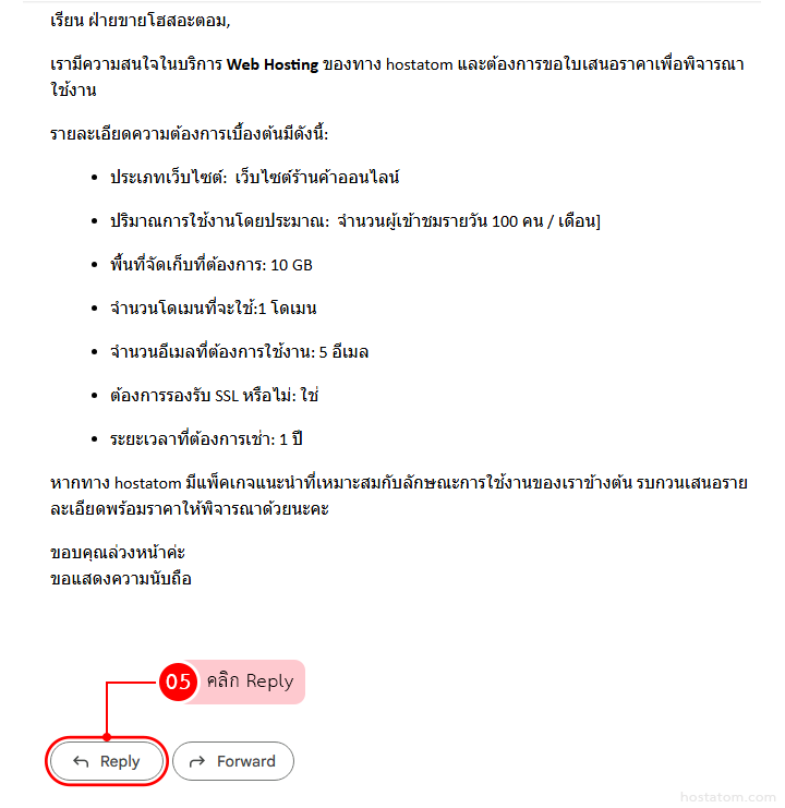 คลิกที่ปุ่ม “Reply”