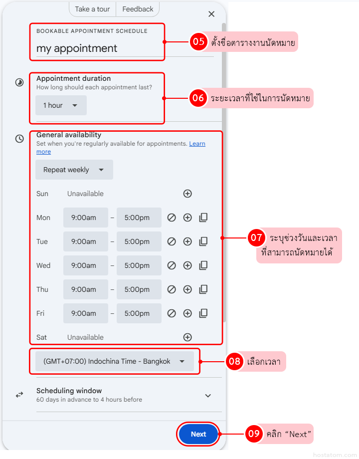 - BOOKABLE APPOINTMENT SCHEDULE – ตั้งชื่อตารางงานนัดหมาย
