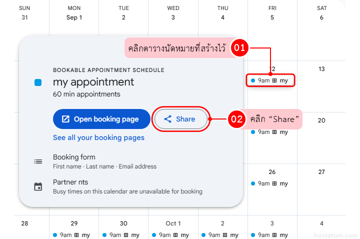 คลิกที่ ตารางนัดหมาย => คลิก Share