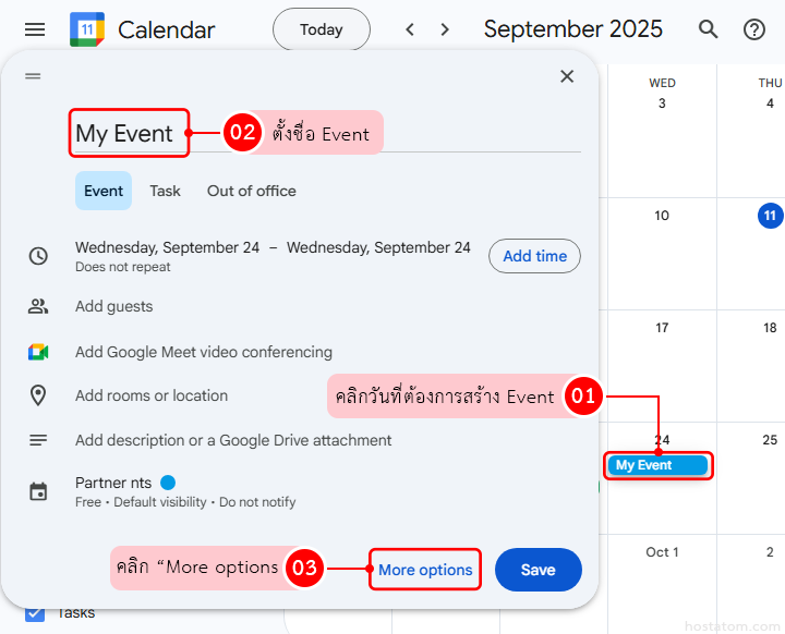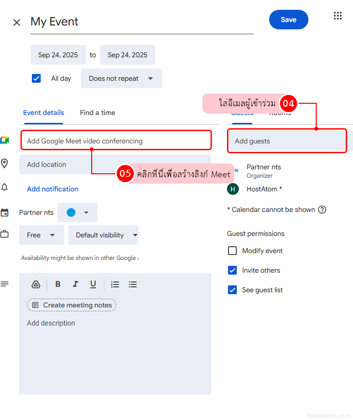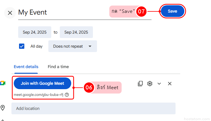 สร้าง Event พร้อมลิงก์ Google Meet
