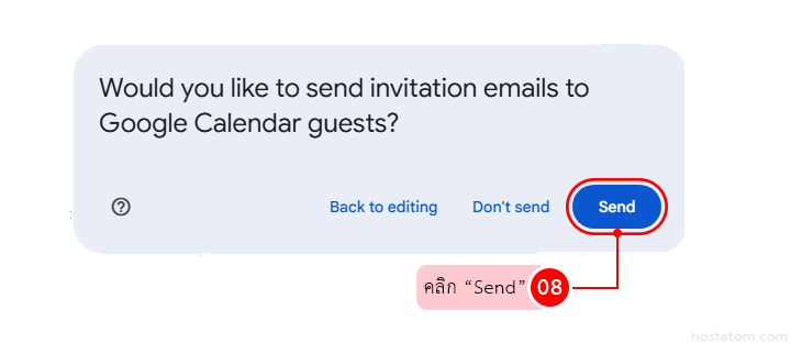 จะมีหน้าต่างเด้งขึ้นมาว่า “คุณต้องการส่งอีเมลเชิญไปยังผู้เข้าร่วมใน Google Calendar หรือไม่?”