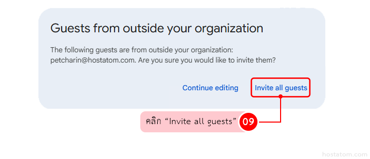 หากต้องการเชิญให้กด Invite all guests แต่หากต้องการแก้ไข Event ให้เลือก Continue editing