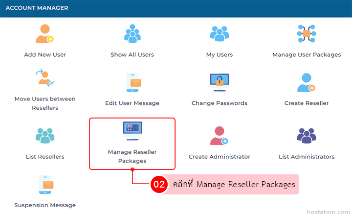คลิกที่ Manage Reseller Packages ในหมวด ACCOUNT MANAGER
