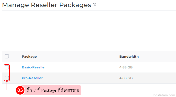ติ๊ก √ ที่ Package ที่ต้องการลบ