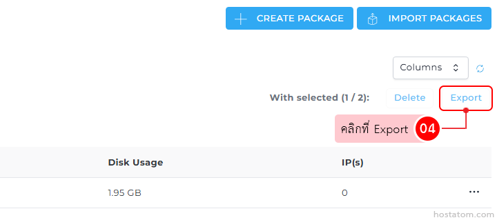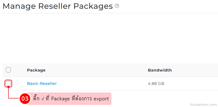 หมายเหตุ : ข้อมูล Package นี้จะแสดงเฉพาะการตั้งค่า Package อย่างจำนวนโดเมน แบนด์วิดท์ พื้นที่ดิสก์ อีเมล และอื่น ๆ ซึ่งไม่ได้รวมไปถึงการ export ข้อมูลบัญชีผู้ใช้ที่สร้างจาก Package นั้นด้วย