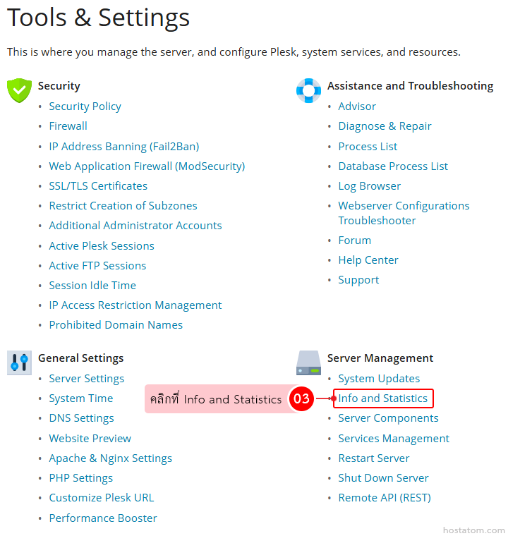 คลิกที่ Info and Statistics ในหมวด Server Management