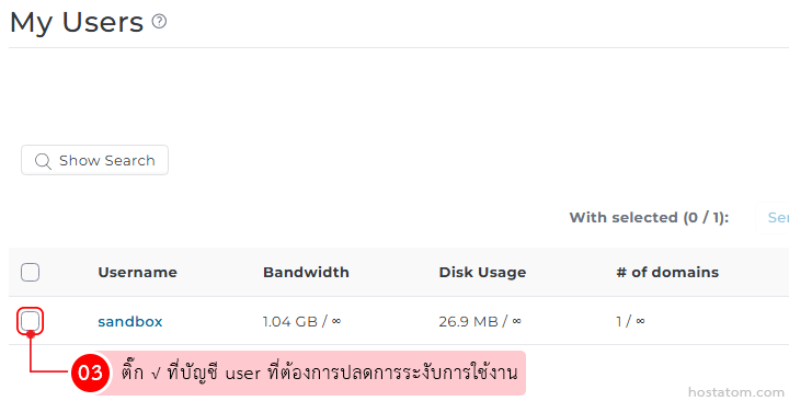 ติ๊ก √ ที่บัญชี user ที่ต้องการปลดการระงับการใช้งาน