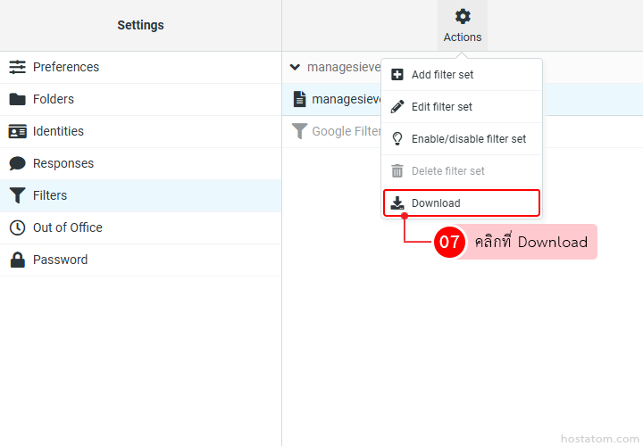 วิธีดาวน์โหลด filter set ใน Roundcube Webmail