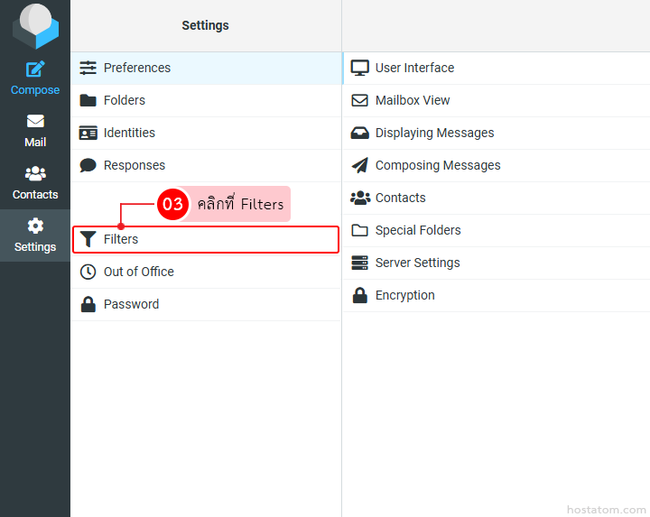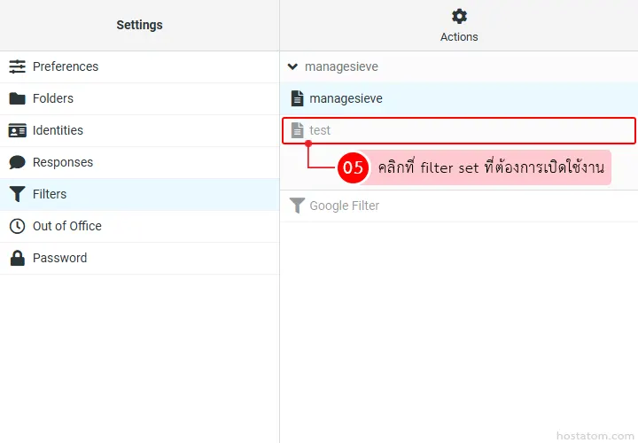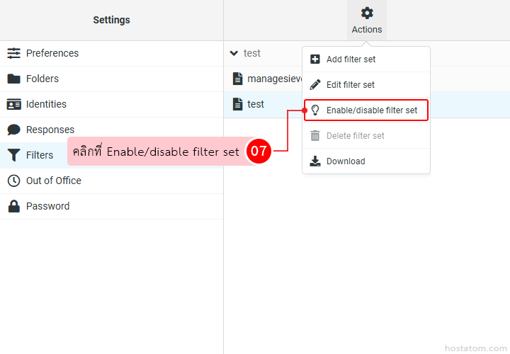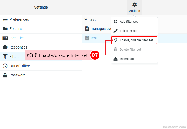 วิธีเปิด/ปิดการใช้งาน filter set ใน Roundcube Webmail