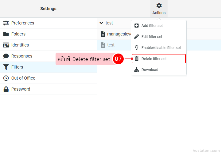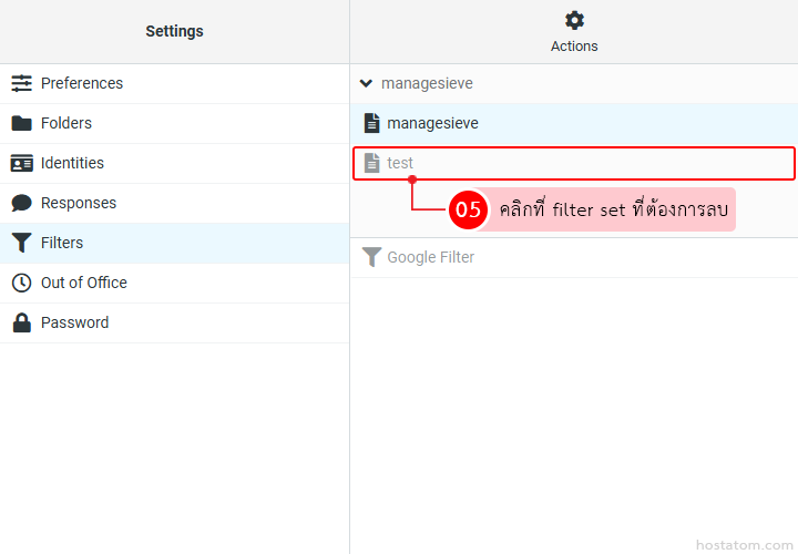 สำหรับผู้ที่ใช้บริการเว็บเมลผ่าน Roundcube Webmail สามารถลบ filter set ที่ไม่ได้ใช้งานแล้วออกได้ตามขั้นตอนต่อไปนี้
