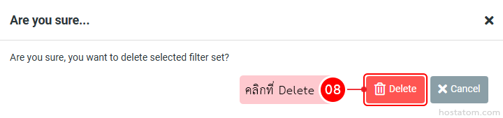 ระบบจะแสดงหน้าต่างยืนยันการลบ filter set ที่เลือกขึ้นมา ให้คลิกที่ Delete