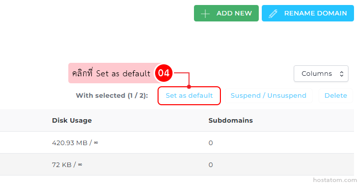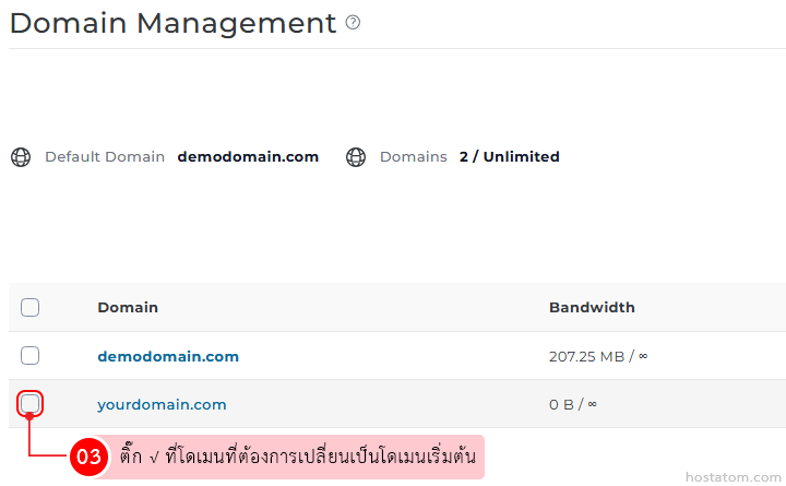 ติ๊ก √ ที่โดเมนที่ต้องการเปลี่ยนเป็นโดเมนเริ่มต้น