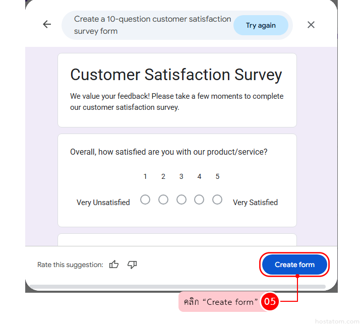 ลูกค้าที่ใช้ Google Workspace ของ hostatom และเปิดใช้งาน Gemini แล้ว สามารถใช้ฟีเจอร์นี้ได้ทันทีผ่าน Google Forms