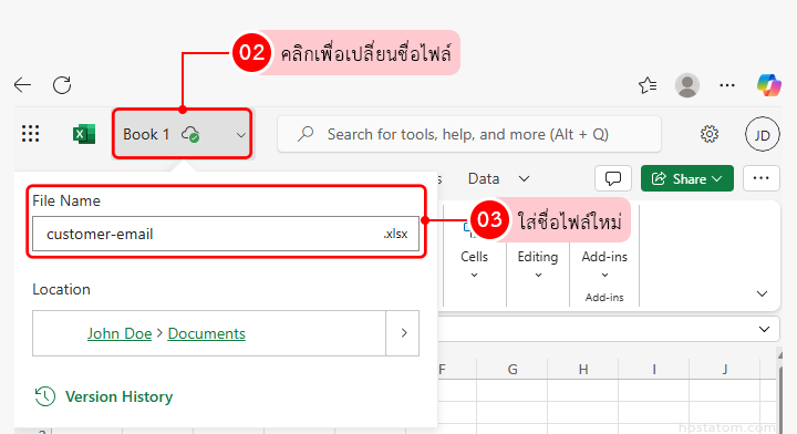 เปิด Excel Online (ผ่านเว็บ หรือใน OneDrive/SharePoint) จากตัวอย่างนี้จะเปิดผ่านเว็บ