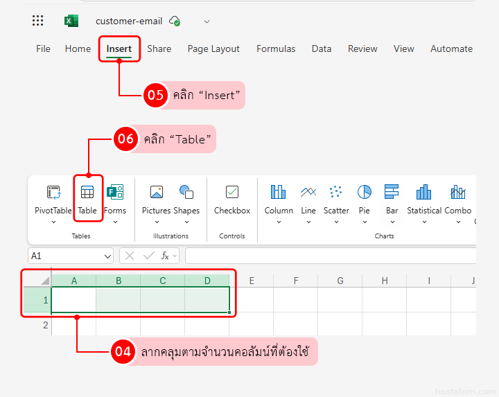 สร้างไฟล์ใหม่ชื่อเช่น customer-email.xlsx