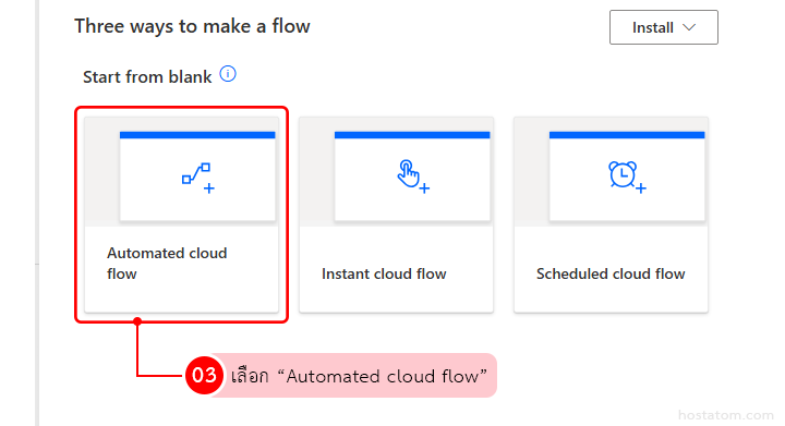 เลือก “Automated cloud flow” (Flow ที่รันอัตโนมัติเมื่อมีเหตุการณ์)