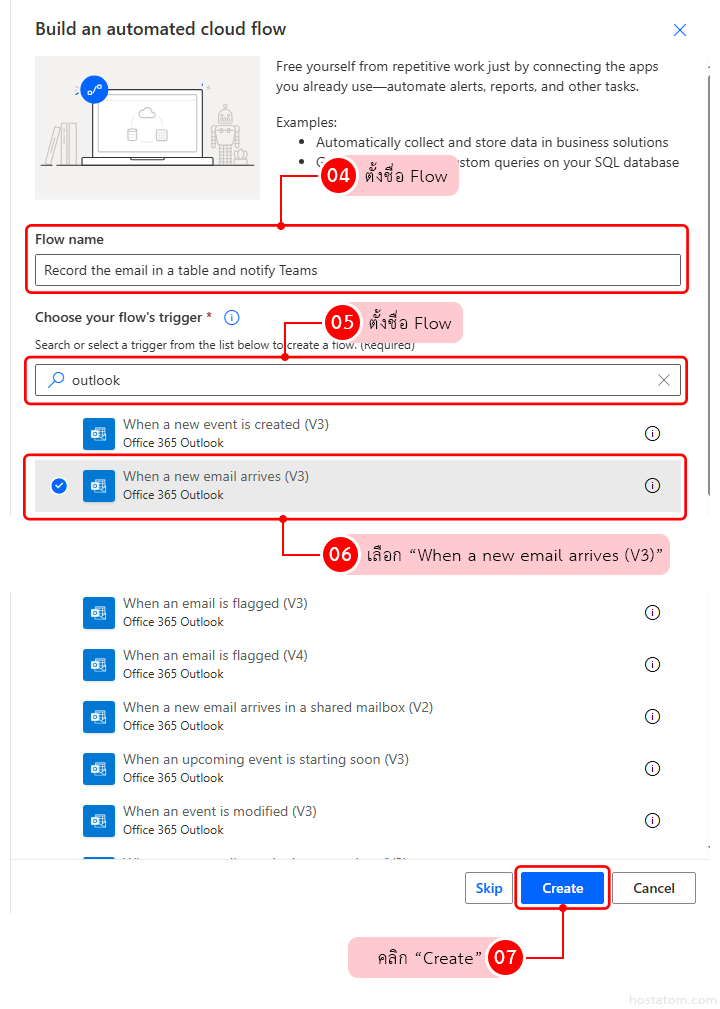 ขั้นตอนที่ 2 – สร้าง Flow อัตโนมัติจาก Outlook