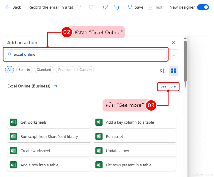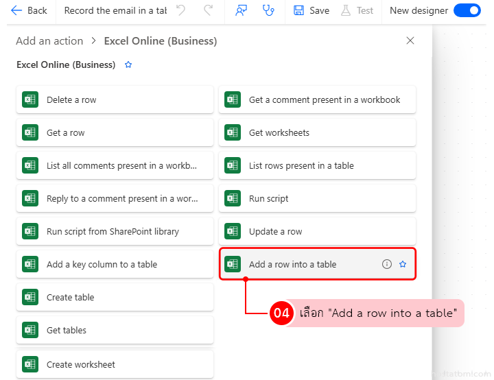 ขั้นตอนที่ 3 – เพิ่ม Action ให้บันทึกลง Excel